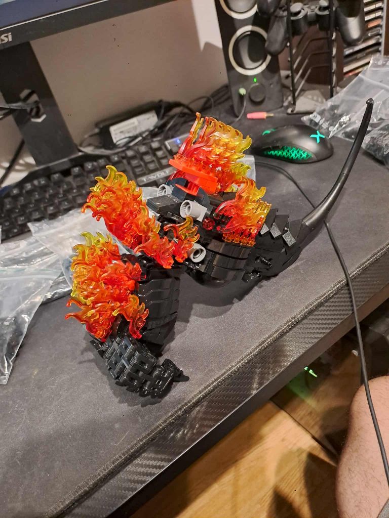 To już zajęło sporo czasu, ale było relatywnie łatwe. Te płomienie to było wyzwanie cierpliwośći. Przedłużało fakt, że co jakiś czas brakowało jednej części, albo była nie w tym kolorze. Wynikało to albo z pomyłek albo braków przy dostawie albo paczki trzymanej 2 miesiące na cle…